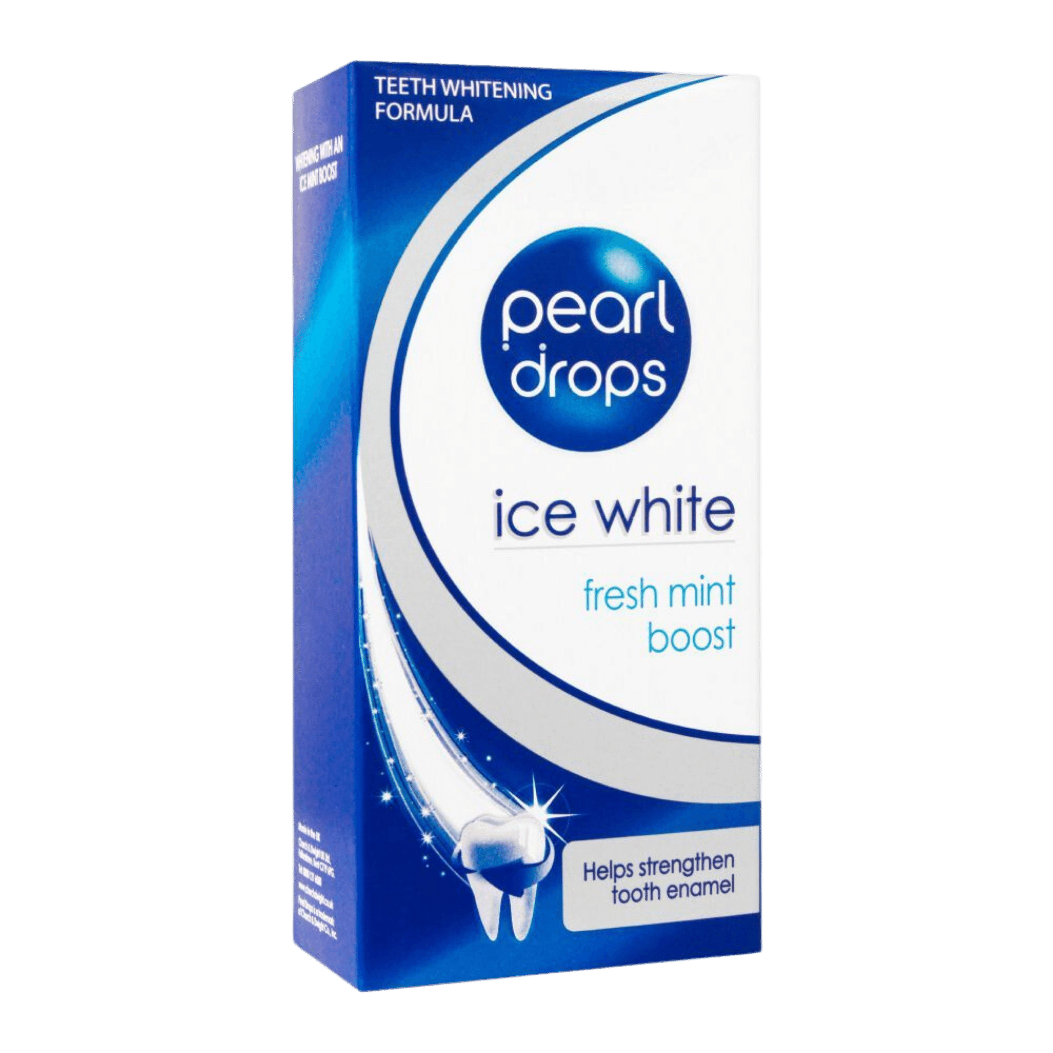 Pearl Drops Ice White Fresh Mint is an effective teeth whitening toothpaste that helps remove stains, brighten your smile, and deliver long-lasting freshness with a cool fresh mint toothpaste flavor.